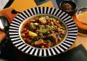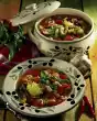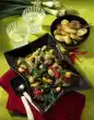 Drain the beans and add to the potatoes with the spring onions and tomatoes. Peel the garlic, press it through a garlic press and mix it with the beans. Let everything braise well and season again with salt and pepper.