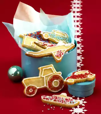 Cut butter into cubes. Knead the sugar, butter, flour, gingerbread spice, almonds and egg first with the dough hooks of the hand mixer, then with your hands to a smooth dough. Wrap the dough in foil and chill for about 30 minutes. Roll out the dough 2-3 mm thin on a floured work surface and cut out biscuits with various cutters (e.g. car, plane, boat).