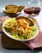 Mix the prepared ingredients and arrange on top. Wash and chop the herbs for the vinaigrette. Mix vinegar, salt, pepper and sugar. Beat the herbs and remaining oil into the vinaigrette, pour over the salad and serve.