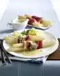 Embezzle oil and horseradish. Carefully mix prepared salad ingredients and vinaigrette and arrange on plates. Serve with 1 slice of roast beef.