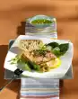 Clean and wash the salad and cut into fine strips. Peel carrots and cut them into thin sticks. Clean and wash spring onions and cut them into thin rings. For the vinaigrette, mix vinegar and 3 tablespoons of cold water with salt, pepper and sugar.