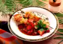 Season with salt and pepper and remove. Fry the vegetables as well. Add cream and stock. Add apricots, curry and green pepper and let it steam for about 5 minutes. Add sauce thickener while stirring, bring to the boil again and add the meat. Season to taste with salt and pepper