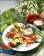 Fry skewers in hot oil until golden brown all around. Steam the rest of the vegetables, turning them frequently. Season everything with salt and pepper