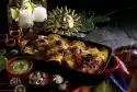Let it cool down. Knead marzipan with icing sugar. Roll out between two cut open, large freezer bags the size of the sponge cake plate. Turn the sponge cake over to the other side using the tea towel. Stir jam until smooth. Place 2 tablespoons on the sponge cake and spread thinly. Place the marzipan plate on top using the freezer bag and press down slightly. Add the rest of the jam and spread. Peel pineapple, remove woody pieces. Quarter the pineapple and cut out the stalk. Cut pineapple into slices. Peel mango, cut flesh from core and dice. Peel kiwis and cut into slices. Peel papaya, cut in half, scrape out kernels. Cut the flesh into slices.