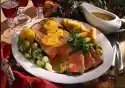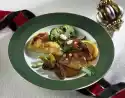 Cut polenta into rhombs and arrange on plates with the skewers and lemon wedges. Sprinkle with pine nuts and garnish with remaining chervil. Add pernod cream extra.