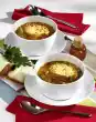 Melt fat in a pot, stir in flour and sweat it on. Add stock while stirring. Bring to the boil and simmer for about 3 minutes. Refine with cream, season if necessary. Add meat and vegetables to the soup. Arrange in bowls and sprinkle with the herbs