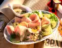 Mix the prepared salad ingredients and vinaigrette loosely and leave to stand briefly.