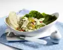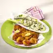 Fry in hot oil for about 7 minutes, turning. Garnish with salad leaves and chilli pepper. Serve with the tortilla chips.