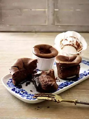 Beat the eggs and sugar with the whisk of the hand mixer until foamy. Stir in curd and starch. Stir the cocoa and chocolate cream into the mixture. Place the cookies in the cup cake tins.