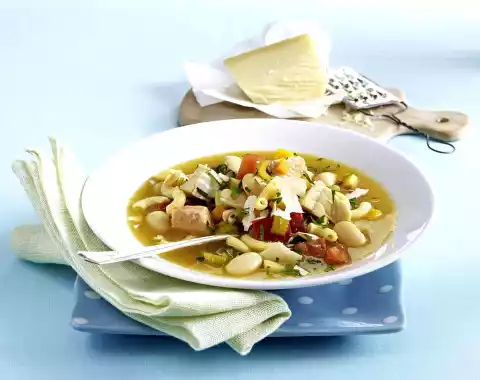 Pour in broth, bring to the boil. Add beans to the soup, bring to the boil and simmer for about 10 minutes. Add fish and tomatoes, reduce heat and cook in the hot, no longer boiling soup for about 5 minutes.