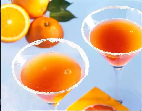 Moisten the edges of the glass with the orange wedge. Then dip into the fruit sugar. Mix fruit tea, sea buckthorn juice, cinnamon and ice cubes in a shaker. Strain into the four glasses. Fill up with ginger ale