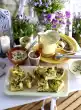 Wash mint and rosemary, shake dry. Put 1-2 stems of the mint aside. Remove leaves or needles from other herbs. Heat 2 tablespoons of oil in a frying pan. Fry the rosemary and bread together.