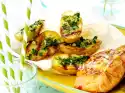 Cut the cobs in half or in thirds depending on size. Place in grill trays and grill on the hot grill until golden brown all around. Brush with butter and season with sea salt.