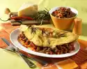Wash parsley, shake dry, pluck leaves from the stalks and chop. Cut the pancakes into quarters. Arrange pancakes, sauce and meat on plates. Sprinkle with parsley.