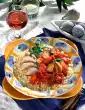 Season to taste with salt, pepper and Marsala. Skip the bacon in a pan. Add the onion and fry briefly until transparent. Add vinegar and remaining oil, season to taste with salt and pepper. Mix tomatoes and lettuce with warm marinade and arrange on a plate with the poulard.
