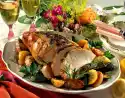 Mix 2 tablespoons of oil with salt, pepper and paprika. Brush the poultry with it 15 minutes before the end of the cooking time. Deglaze the roast gradually with chicken stock. Pour stock over the poultry several times.