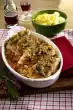 Peel the onion and cut into fine slices. Wash the turkey escalope, dab dry and cut into fine strips. Heat oil in a pan. Fry the turkey strips for 2-3 minutes.