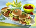 Prepare rice in boiling salted water according to package instructions. In the meantime, remove the sesame seeds and roast them golden in a hot pan and put them aside. Stir ketchup with sesame, soy sauce, stock, sambal oelek and sesame oil until smooth.