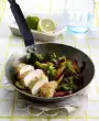 Remove, put aside and season with salt and pepper. Fry the corn on the veal in the cooking fat for 2-3 minutes. Add onion and fry. Add leek, carrots and bamboo shoots and fry for approx. 5 minutes, turning occasionally.