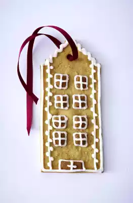 Stick to the house fronts with some protein. Prick small holes in the gables with a wooden skewer to hang up.