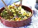 Peel or clean, wash and slice the carrots, courgettes, radishes and spring onions. Peel and chop garlic. Wash and chop parsley.