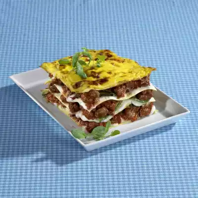 Season with salt and pepper. Spread 1/4 of the tomato mince mixture in an ovenproof dish. Layer 1 lasagne dish, 1/3 courgette slices, 1/3 tomato mince and 1/4 herb sauce on top and repeat until all ingredients are used up.