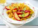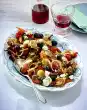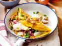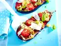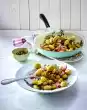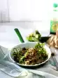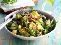 Form 4 flat meatballs from the couscous mixture. Heat the oil in a pan and fry the meatballs for about 10 minutes, turning them over. Clean and wash the salad and spring onion. Spin dry lettuce, cut spring onion into rings.