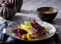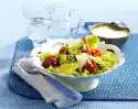 Put 5 tbsp. water, 1 tsp. olive oil and 1/2 tsp. curry powder in a pot and bring to the boil. Remove from heat, stir in couscous and let it swell for about 2 minutes. In the meantime, wash the peppers and cut them into cubes. Wash parsley, pluck leaves and cut into strips. Add parsley and paprika to the couscous