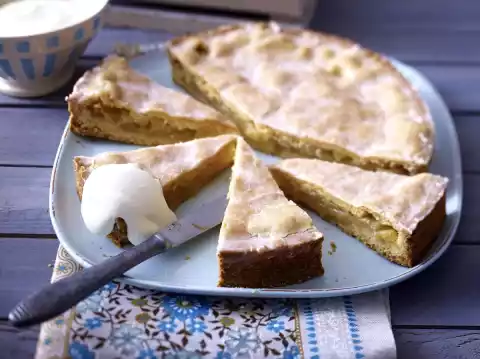 Place the dough lid on top and carefully press down the rim. Continue baking at the same temperature on the lowest rack for 45-50 minutes. Let the cake cool down.