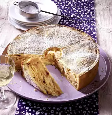 Roll out the remaining dough to a round shape (approx. 24 cm Ø) and place over the filling. Press the edges together and slightly scratch the surface in a star shape. Cut out a round circle of dough (approx. 2 cm Ø) in the middle. Bake the cake in a preheated oven (electric cooker: 175 °C/ convection oven: 150 °C/ gas: see manufacturer) for approx. 45 minutes. If the surface becomes too dark, cover with aluminium foil
