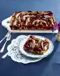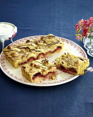 Roll out the rest of the shortcrust pastry into a rectangular shape (approx. 20 x 30 cm), cover the plums with it and press on. Sprinkle the macadamia nuts over it and press them down. Bake in the preheated oven (electric cooker: 175 °C/ convection oven: 150 °C/ gas: see manufacturer) for approx. 45 minutes, remove from oven and let cool on a cake rack