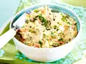 Clean and wash spring onions and cut into fine rings. Cut the mango from the stone. Peel and chop the flesh. Wash lemon balm, shake dry and cut into fine strips. Carefully mix prawns with spring onions, mango and lemon balm. Season with lime juice, salt, pepper and sugar