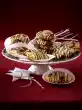 Roll out the dough between 2 layers of baking paper 3-4 mm thin. Cut out approx. 50 circles with a round cookie cutter (approx. 3 cm Ø), kneading the dough again and again and cutting out more. Place on 2 baking trays lined with baking paper. Pre-bake one after the other in a preheated oven (electric cooker: 175 °C/ convection oven: 150 °C/ gas: level 2) for 5-10 minutes, remove