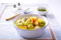 Wash the potatoes and cook in salted water for about 20-25 minutes. Drain potatoes, let cool and peel. Peel and finely dice the onion. Cook onion in the broth for 3-4 minutes. Cut potatoes into slices and pour the stock over them, mix carefully and let it cool down.
