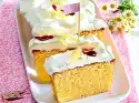 For the icing, melt butter, add 1/2 cup of sugar and 6 tablespoons of water and mix well. Fold in flaked almonds. Spread the almond icing evenly on the pastry sheet and bake for another 10-15 minutes at the same temperature until golden brown.