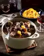 Season with salt and pepper and place in an ovenproof dish. Bake in the preheated oven (electric cooker: 150 °C/ convection oven: 125 °C/ gas: see manufacturer) for approx. 15 minutes. Add wine and stock to the frying pan and let it simmer for about 5 minutes.