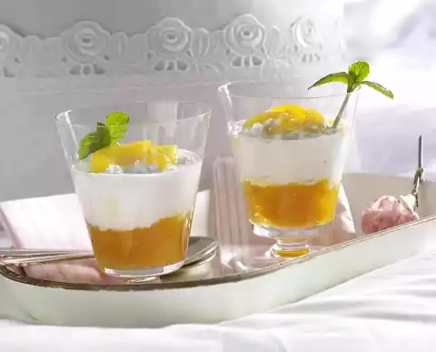 Deglaze with approx. 3 tablespoons of apricot juice, add the apricots, swivel through and let cool down. Mix cheese with 1 tablespoon honey. Layer apricots and cream cheese in glasses, cover with remaining apricot wedges.