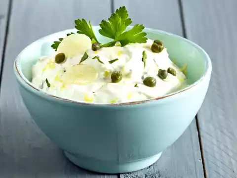 Chop the remaining garlic. Set aside some lemon zest for sprinkling. Mix milk, cream cheese, lemon rind, chopped capers and parsley, season with salt and pepper. Arrange in a bowl.