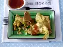 Finely chop the chocolate. Whip cream until stiff. Fold the chocolate, 2 tbsp. advocaat and half the cream into the pudding. Pour the men's cream into glasses. Pour the rest of the cream into a piping bag with a star-shaped spout and pour it onto the cream as tuffs. Drizzle the rest of the eggnog over the cream. Decorate with chocolate rolls if desired