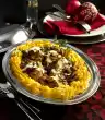 Pour on the stock, add the tomatoes. Cover the goulash and stew for about 40 minutes. Meanwhile fry 2 onions for the dumplings in hot oil until translucent. Add to the soaked rolls. Mix with the eggs and season with salt, pepper and nutmeg.