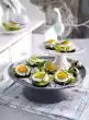 Scratch the vanilla pod lengthwise, scrape out the pulp. Beat egg yolk, vanilla pulp and 100 g sugar until foamy. Fold in cream, beaten egg white and half of the ginger. Line the saddle of venison (30 cm long) or box form (25 cm long) with foil. Pour in ice cream mixture. Let it freeze overnight