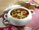 Heat the fat. Sweat flour in it. Gradually stir in stock and 125 g cream. Bring to the boil and simmer for about 5 minutes. Stir in wine. Season soup to taste and heat asparagus in it. Serve with a dollop of herb cream. Garnish with the rest of the basil