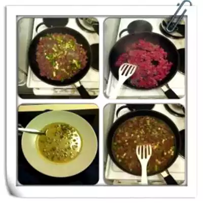 Fry the tartar in oil until it is crumbly. Fry the leeks and then deglaze with broth. Simmer for 10 minutes. Add processed cheese and stir. Season to taste with salt, pepper and paprika powder.