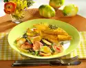 Place the tomatoes in a tall mixing bowl and puree with a blender. Cut the baguette into 12 very thin slices. Heat olive oil in a frying pan, fry the baguette slices in it until golden brown, turning them over. Remove from the pan and set aside. Peel and finely dice the shallots. Peel garlic and chop finely. Heat oil in a pot and fry shallots until translucent.