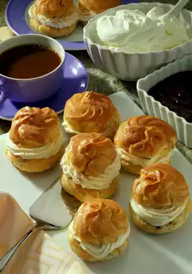 Spread the tops of the cream puffs with it, place on the quark and leave to dry.