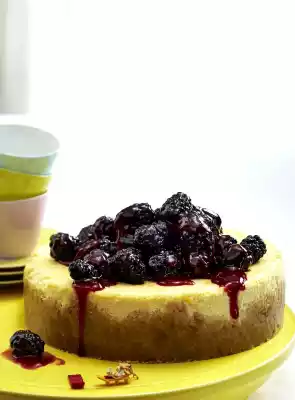To serve, sort the blackberries, wash and drain if necessary. Heat 2 tbsp. jam in a pot, mix with the berries. Carefully remove the cake from the tin. Decorate with berries.