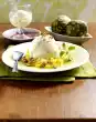 Wash the potatoes and cook in boiling salted water for about 20 minutes. Wash and clean the cauliflower, carrots and beans. Divide cauliflower into florets, cut carrots into slices. Cook together with the beans in salted water for about 15 minutes. Peel, wash and chop the sweet potatoes, except for about 1/2. Clean, wash and cut the chilli pepper into pieces. Peel ginger, 2 cloves of garlic and 2 onions and cut them roughly into pieces.