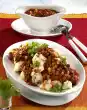 Deglaze with stock, bring to the boil and cook covered for 30 minutes. In the meantime soak the rolls in cold water. Put the mince in a bowl. Add remaining onion cubes, egg and squeezed out roll.