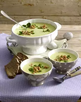 Simmer the soup for 15-20 minutes (until the potatoes are soft). Set aside a few leaves of watercress for garnishing, add the rest to the soup. Cook the soup again for about 5 minutes, then puree and season with salt, pepper and possibly some lemon juice.