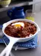 Peel and finely chop the ginger and garlic. Clean the chilli, remove the seeds. Wash the pod and chop finely. Heat 1/2 tsp. oil in a small pot. Sauté the ginger, garlic and chilli in it, sprinkle with brown sugar and deglaze with prune juice. Let it boil down for about 3 minutes at high heat. Season to taste with vinegar and salt